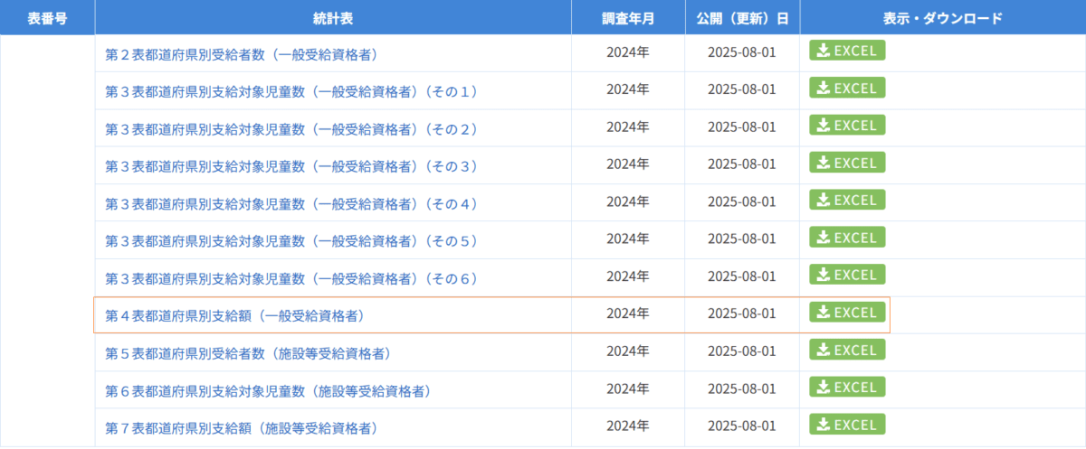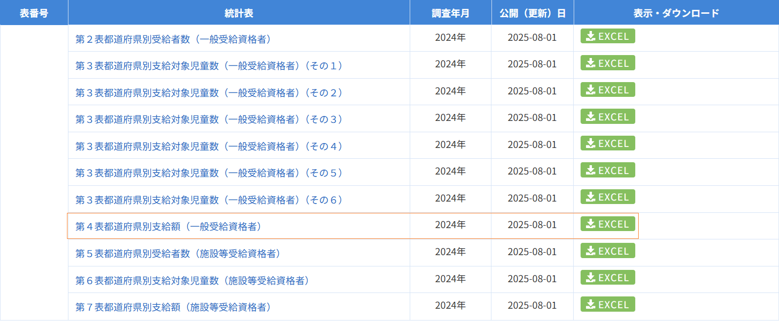 児童手当事業年報は、各都道府県、各省各庁から提出された児童手当支給状況報告等に基づき、児童手当の事業の実施状況を収録したものである。 (e-Statから引用)