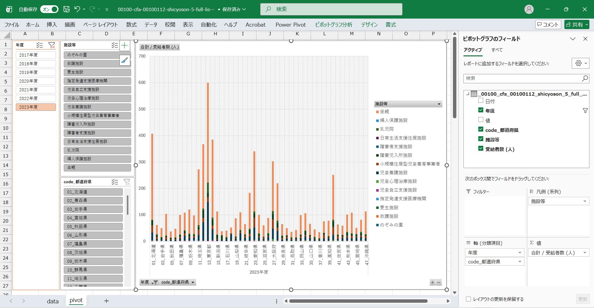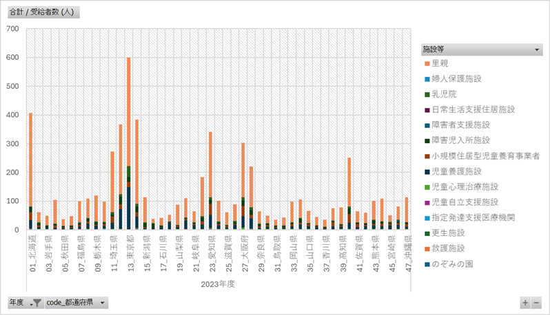 児童手当事業年報_市町村支給分_表5_都道府県別受給者数(施設等受給資格者)_年度次 2017年度 – 2023年度 (列指向形式)