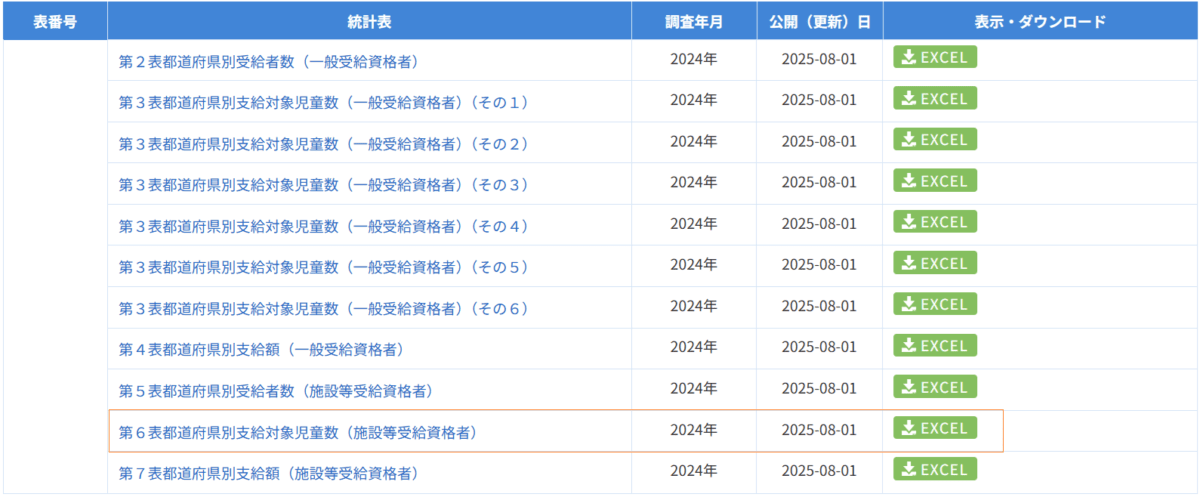 児童手当事業年報は、各都道府県、各省各庁から提出された児童手当支給状況報告等に基づき、児童手当の事業の実施状況を収録したものである。 (e-Statから引用)