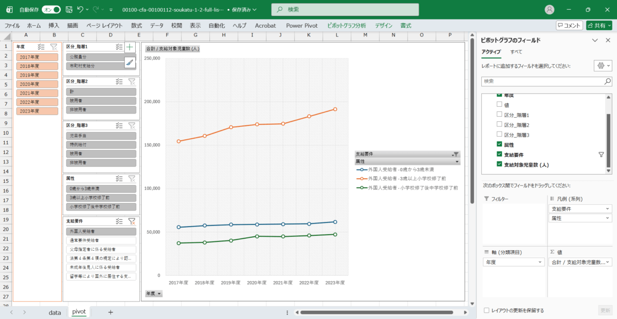 児童手当事業年報_総括1-2_支給対象児童数(一般受給資格者)_年度次 2017年度 – 2023年度 (列指向形式)