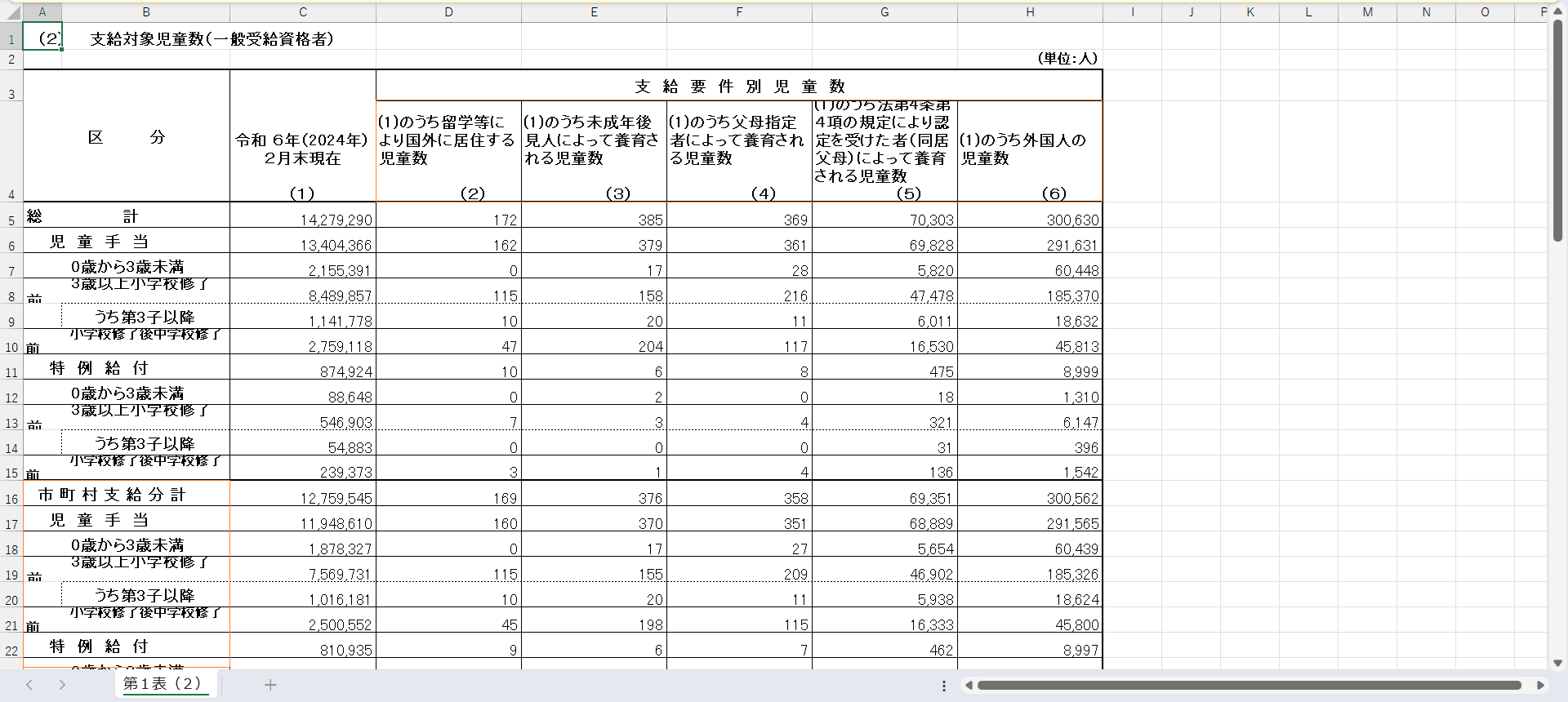 | I列 (標準) | 支給対象児童数 (人) | 値 |