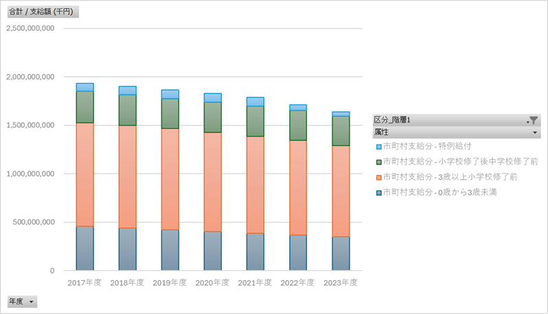 児童手当事業年報_総括1-3_支給額の状況_年度次 2017年度 – 2023年度 (列指向形式)
