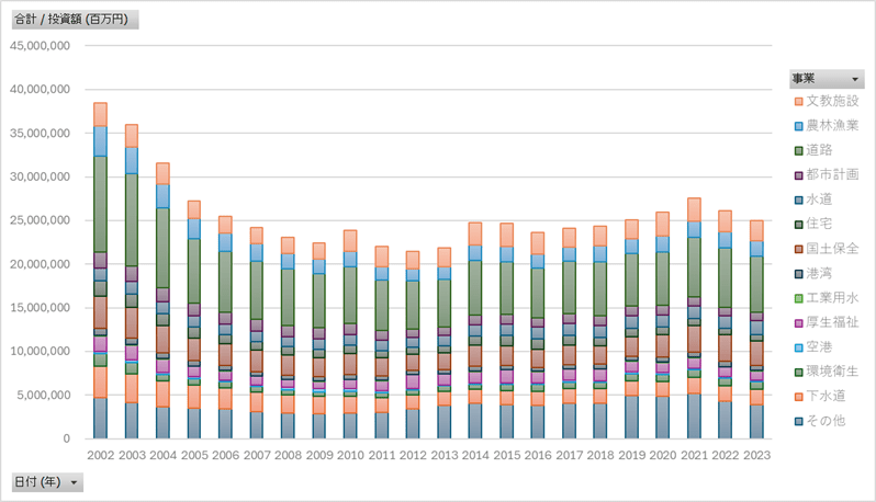 この投稿は総務省が公表している「行政投資実績<都道府県別行政投資実績報告書>」をもとにデータ製作所が編集・作成したものです。政府または担当省庁が作成したものではありません。