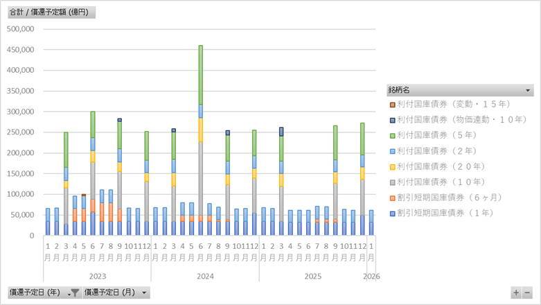 この投稿は財務省が公表している「国債の償還予定額」をもとにデータ製作所が編集・作成したものです。政府または担当省庁が作成したものではありません。