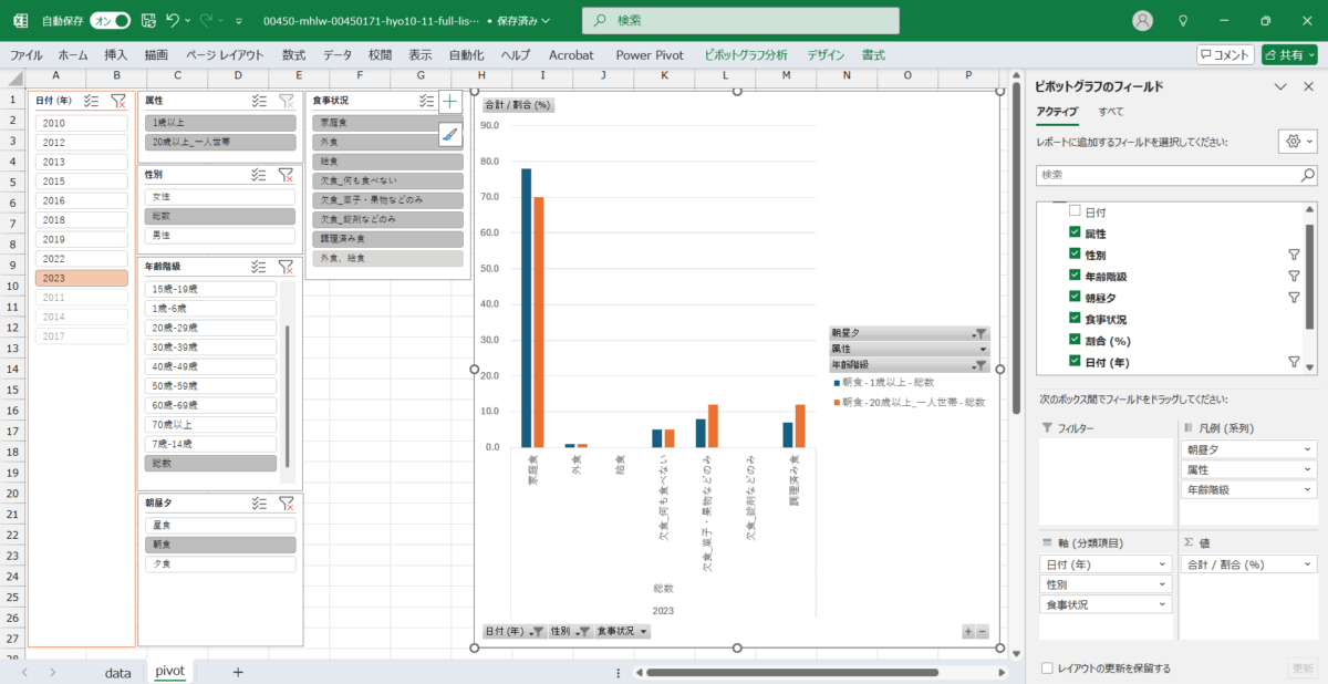| B列の各行の名称 | 食事状況 総数の値はありません。 |
