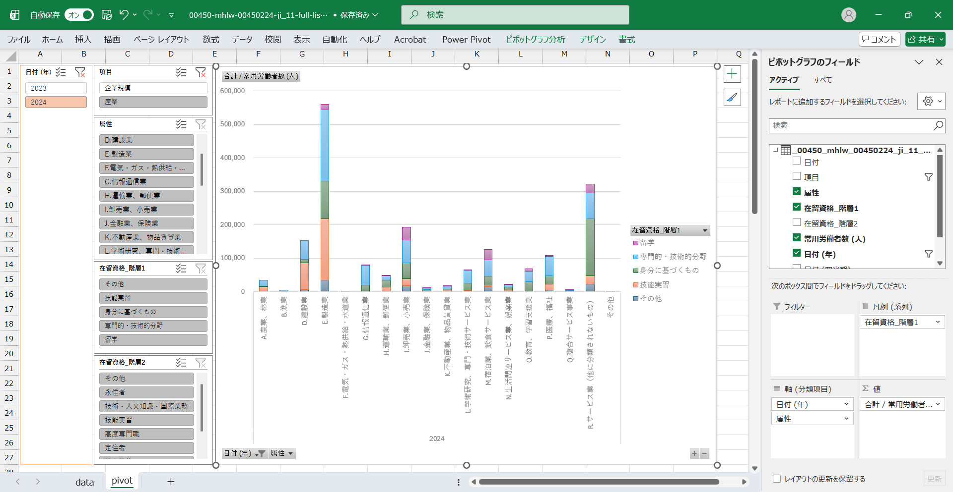 | 4行の各列の名称 | 在留資格_階層1 合計、小計に該当する値はありません。 |