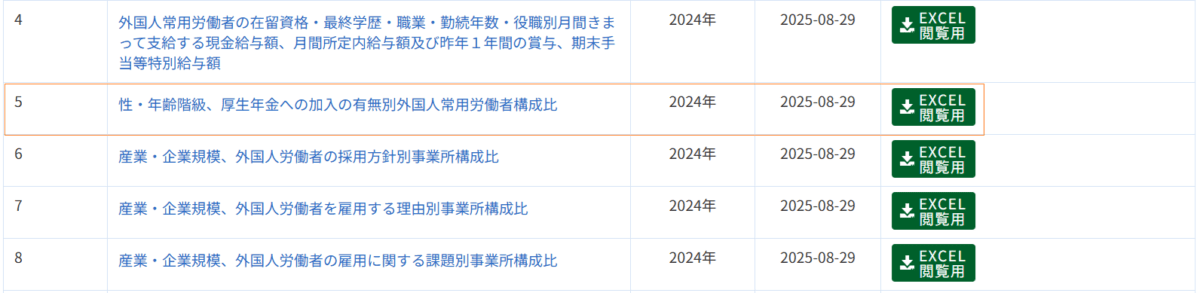 | 5行の各列の名称 | 厚生年金への加入 |