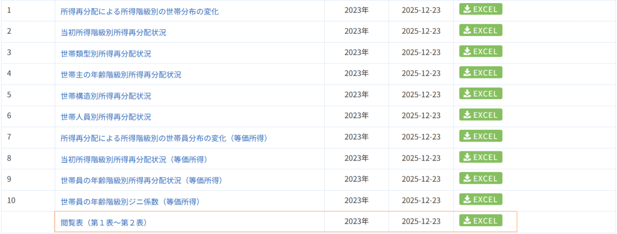 | C列 (標準) | 所得再分配状況(等価所得) | 10 item | |