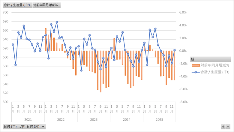 この投稿は農林水産省が公表している牛乳乳製品の生産動向をもとにデータ製作所が編集・作成したものです。政府または担当省庁が作成したものではありません。