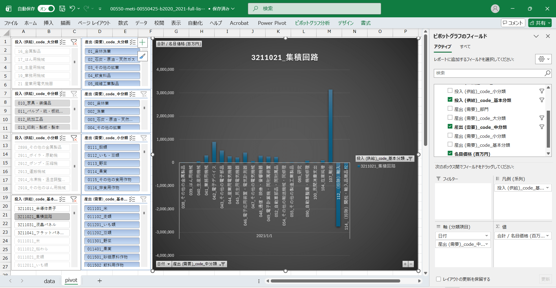 | H列 (標準) | 産出 (需要)_code_大分類 | 63 item | G列の下位階層 |
