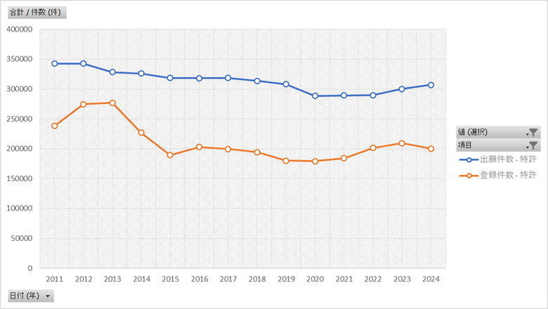 この投稿は特許庁が公表している特許行政年次報告書をもとにデータ製作所が編集・作成したものです。政府または担当省庁が作成したものではありません。