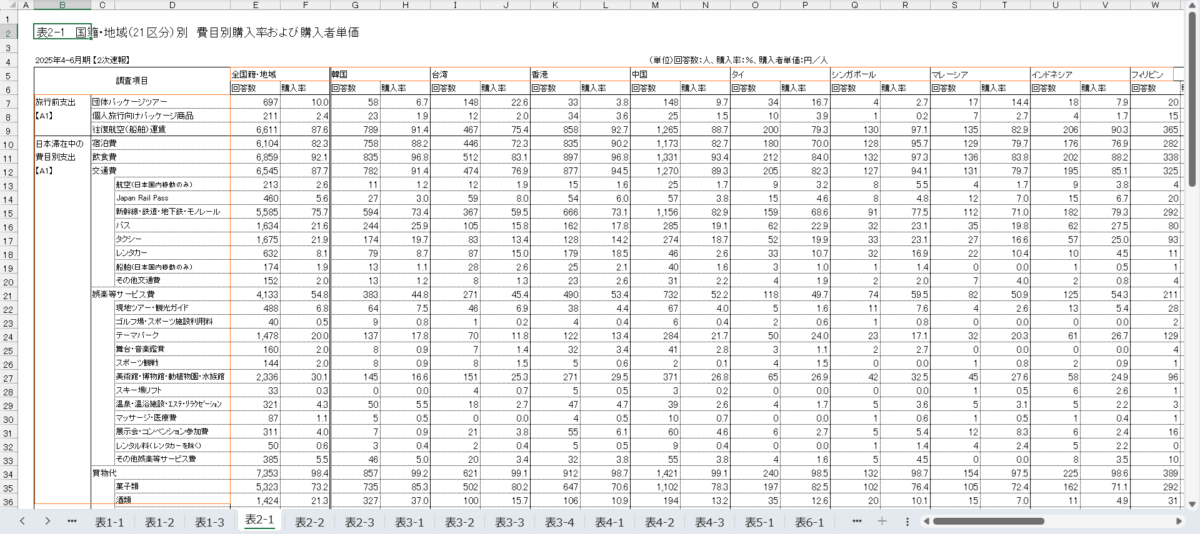 インバウンド消費動向調査_3_国籍・地域・居住地別_費目別購入率・購入者単価_四半期次 2024Q2-2025Q2 (列 – 複数値形式)