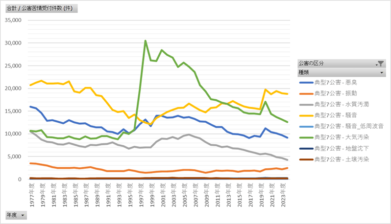この投稿は公害等調整委員会が公表している「公害苦情調査」をもとにデータ製作所が編集・作成したものです