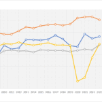 出典:内閣府>景気ウォッチャー調査>季節調整値 全国の分野・業種別DIの推移 00100001