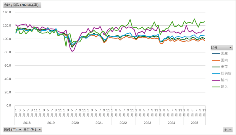 鉱工業生産・出荷・在庫指数_2020基準_3_品目別_月次 2018年1月 – 2025年11月 (列指向形式)
